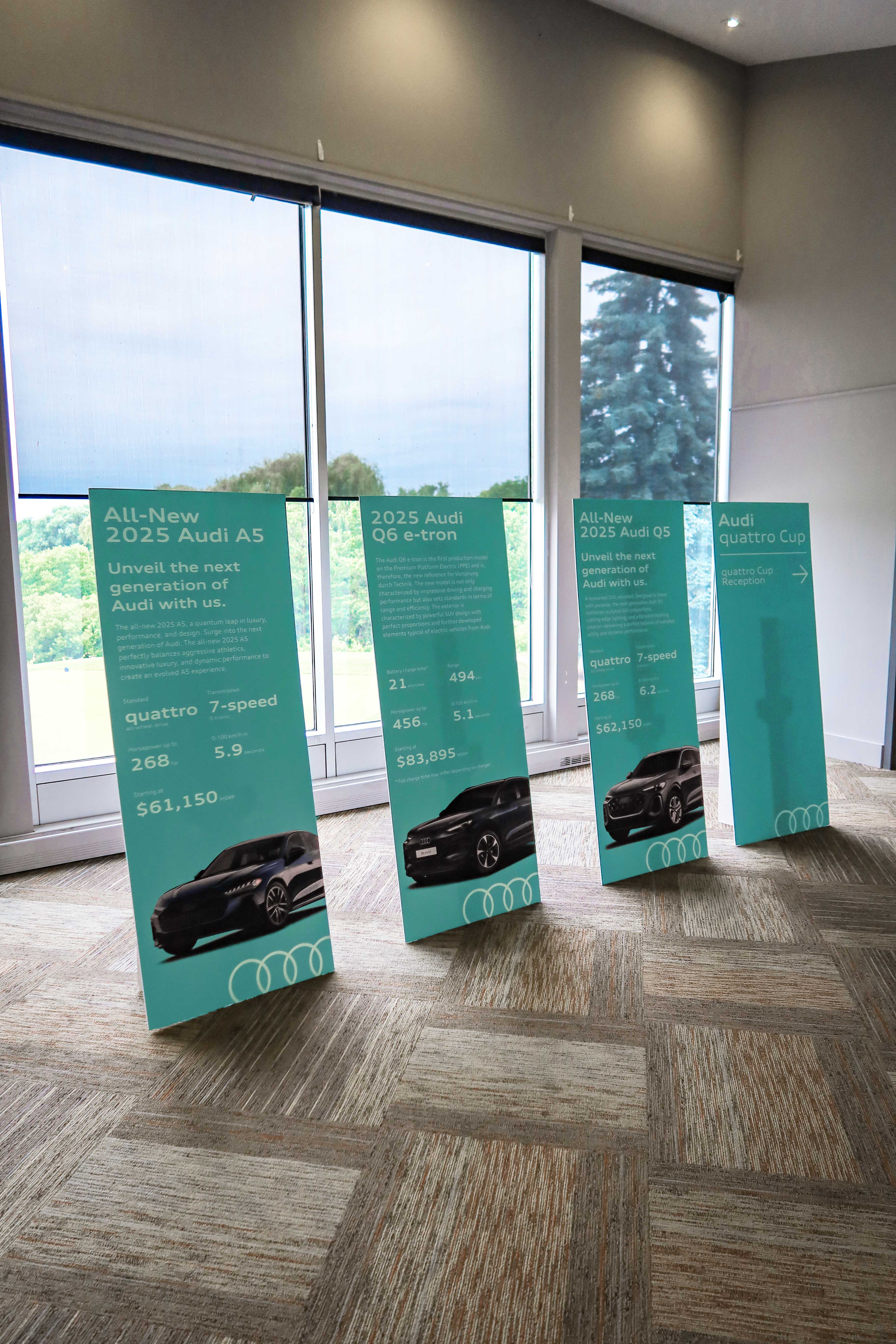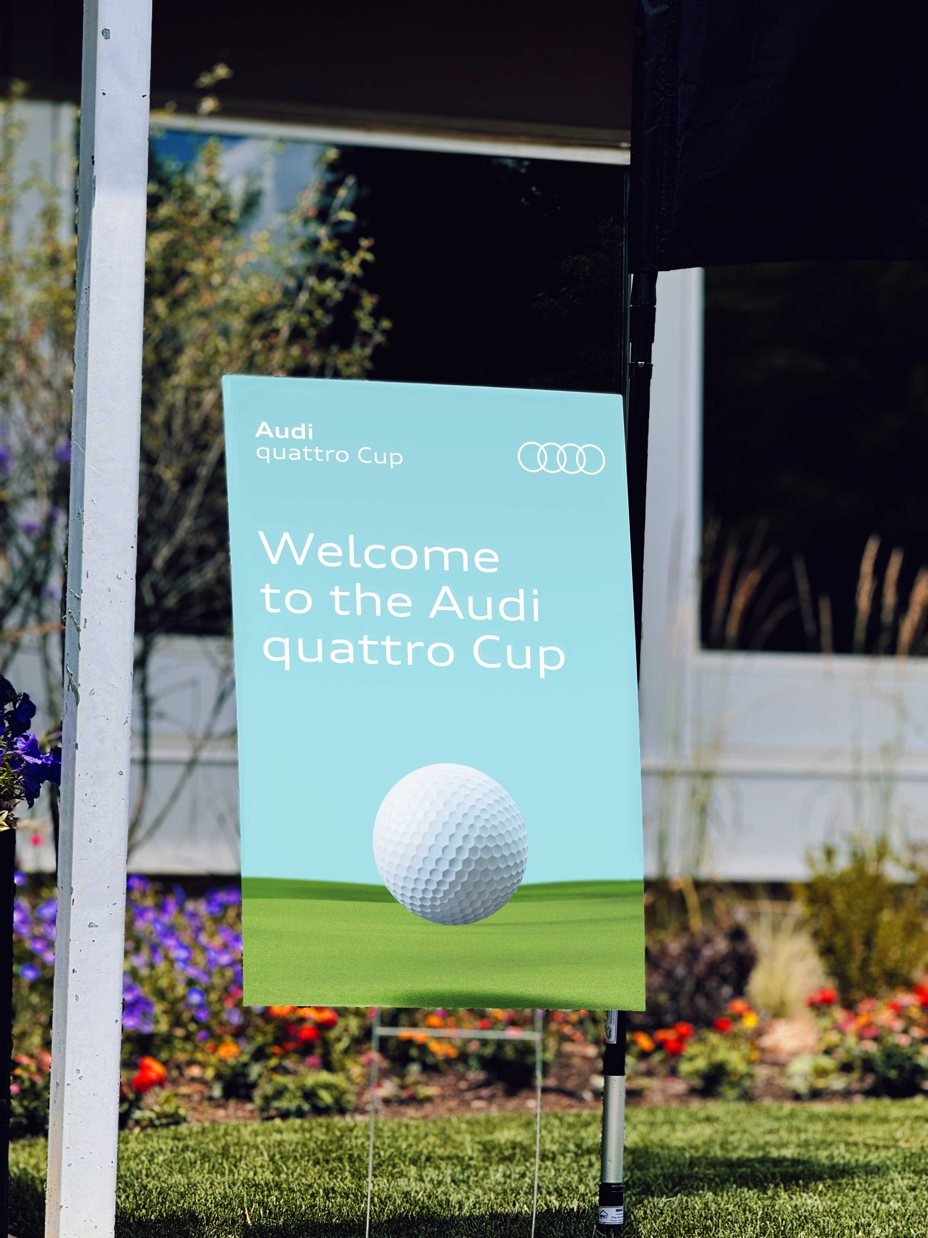 The experience was elevated with high-end branded prizes and giveaways — from golf bags, caps, and Yeti coolers to thermoses and accessories — designed to leave participants with a tangible memory of the event. Mailing campaigns supported the invitations and pre-event communication, while stand-up banners highlighted Audi’s latest car models, their features, and pricing. More than a tournament, the event became an integrated brand platform where design, hospitality, and strategy came together to create a memorable, exclusive experience.