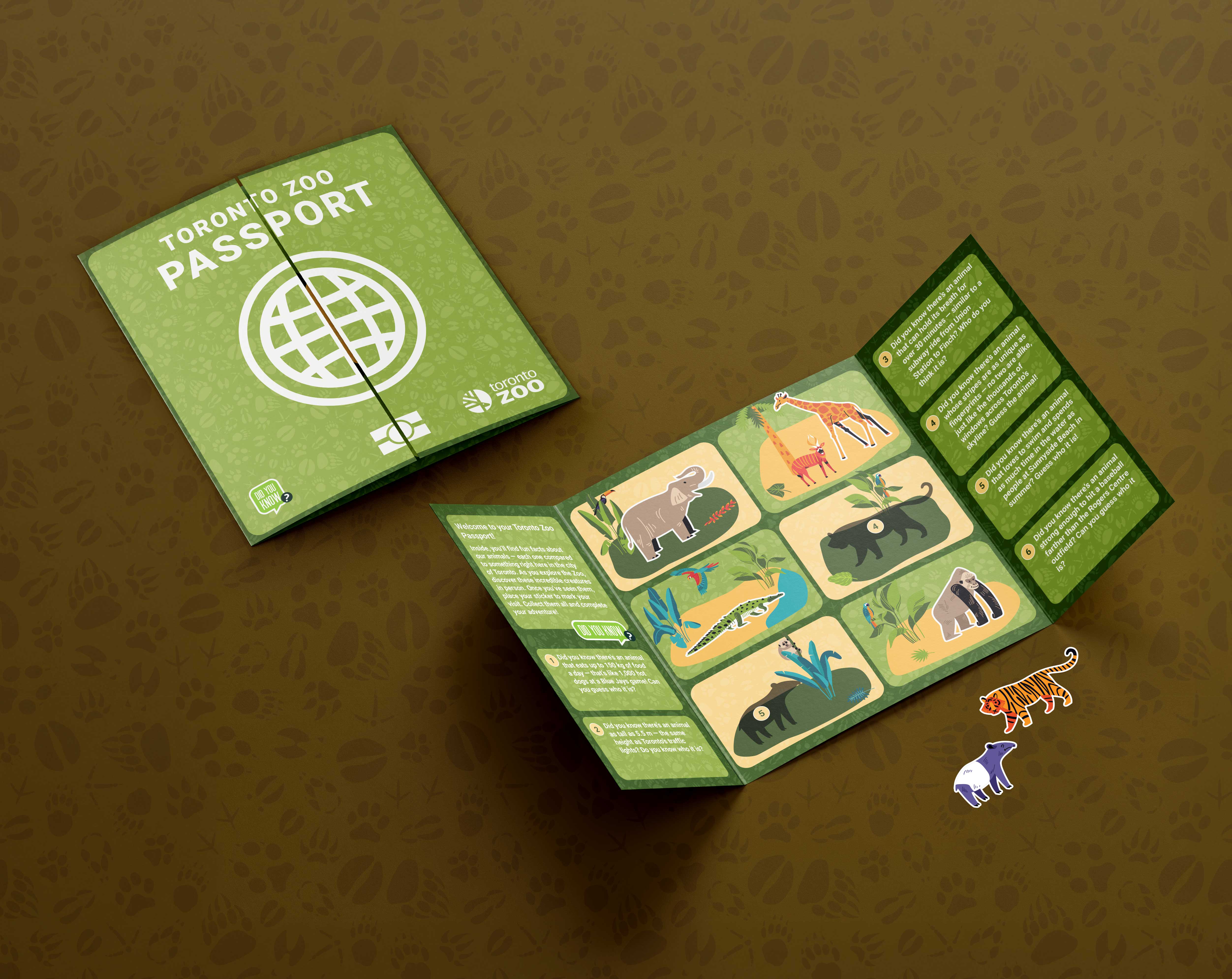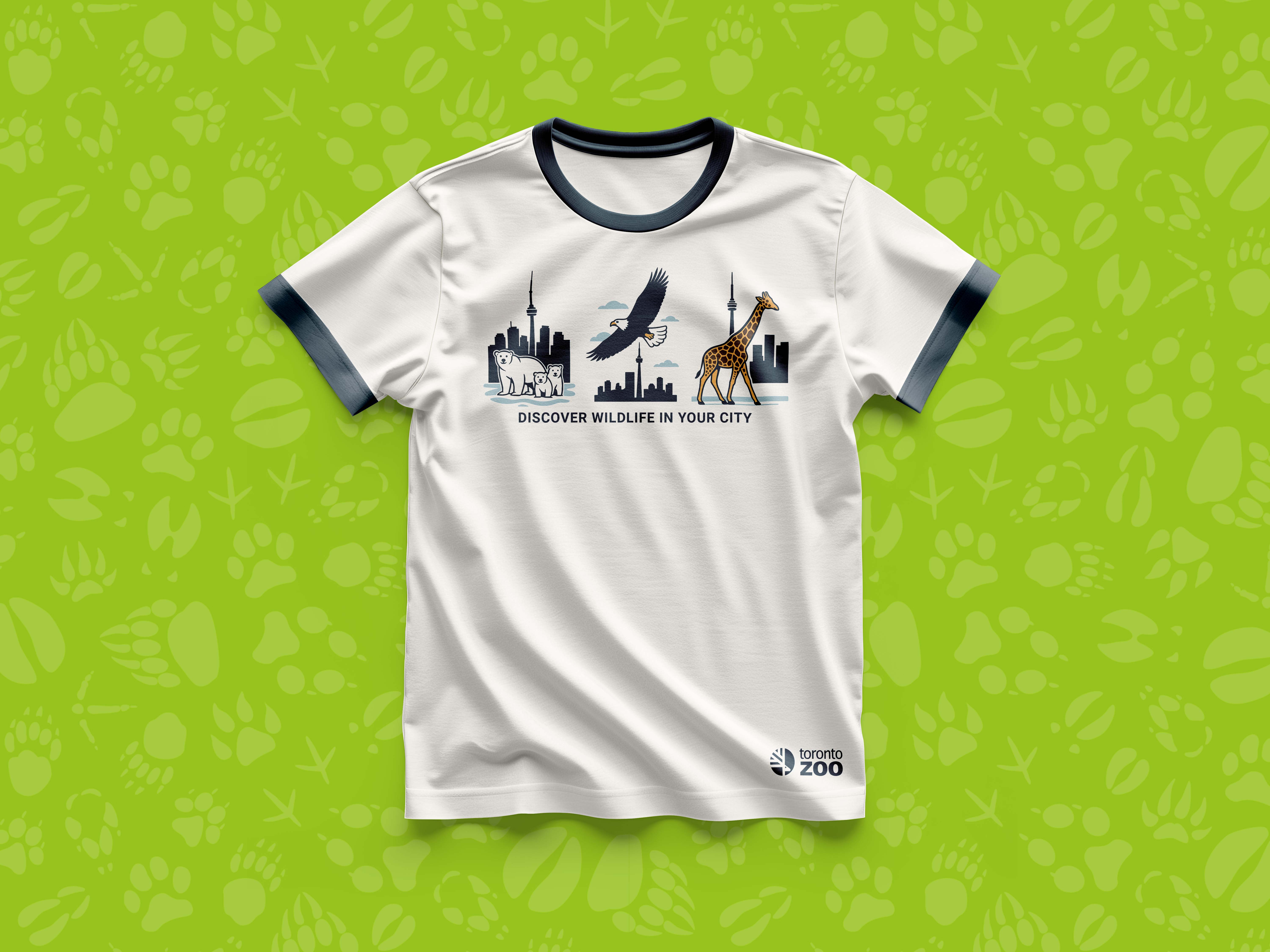 Beyond a poster series, the project grew into a 360° experience: digital campaigns across social media, promotional videos, large-format banners, and illustrated merchandise such as T-shirts for the zoo’s gift shop. For younger visitors, an interactive sticker passport was created, encouraging exploration of different zoo areas while turning learning into play. Tied together under the hashtag #WildingTheCity, the campaign transformed trivia into storytelling, offering a visual journey that connects the community with the wonder of biodiversity.