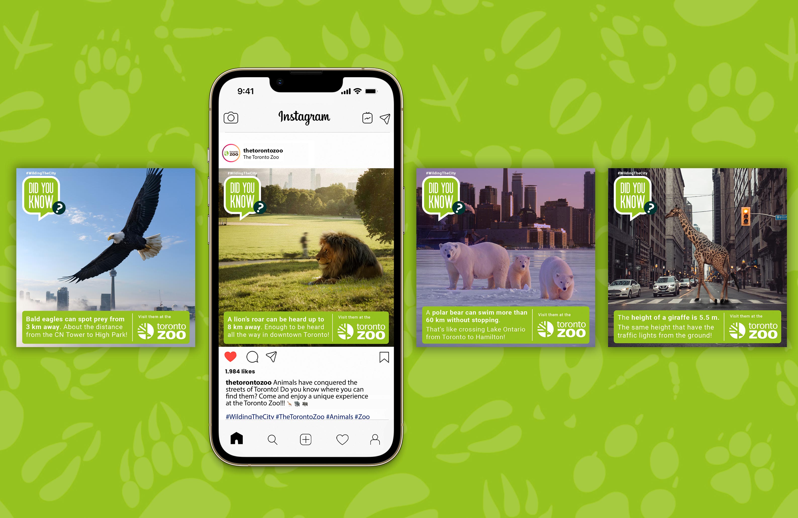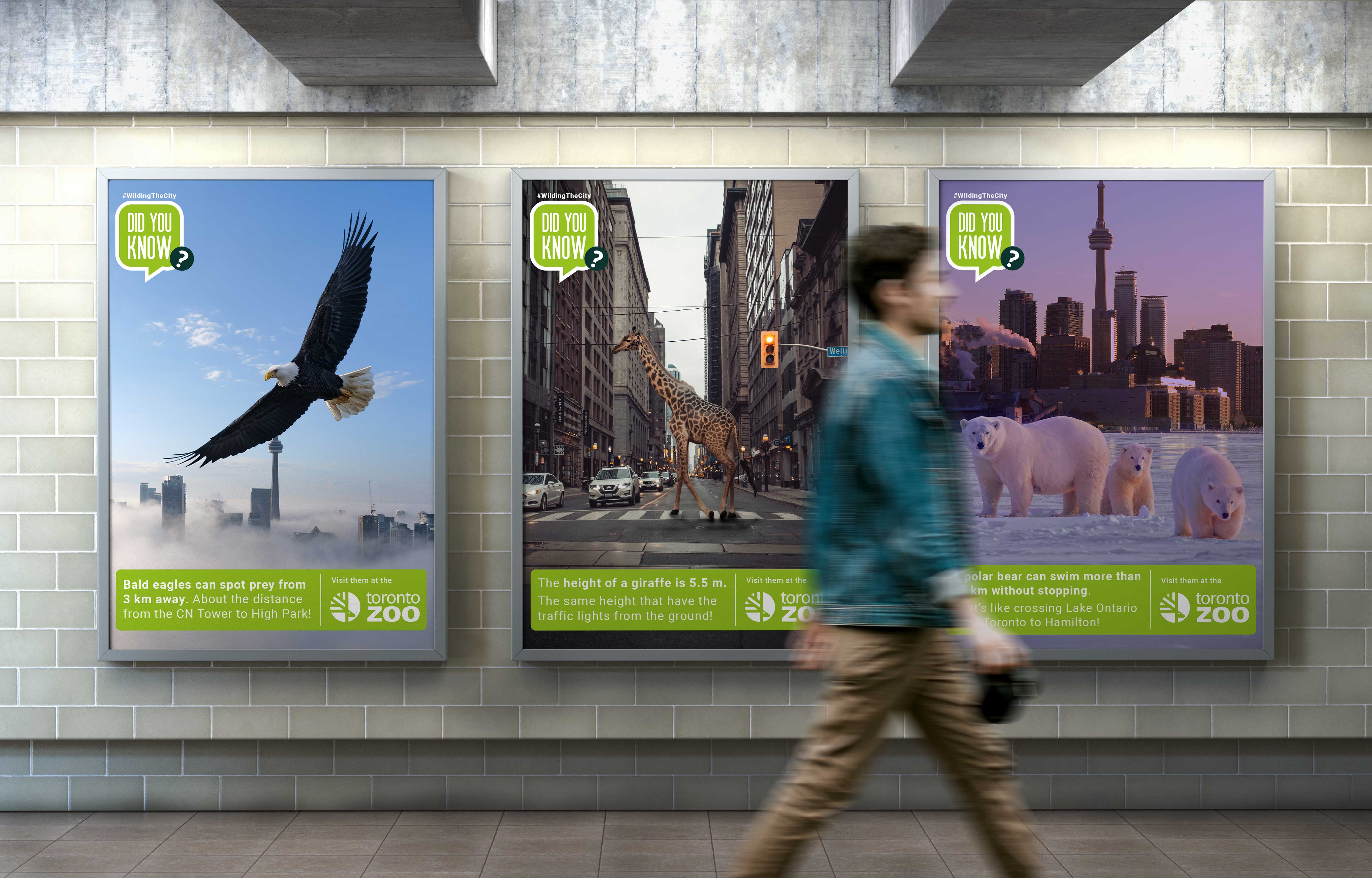 What would happen if you saw a giraffe walking down Yonge Street, or a lion resting in Trinity Bellwoods Park? That playful thought became the spark behind Did You Know?, a campaign designed to bring the wild closer to the heart of Toronto. Through striking photo-compositions, iconic cityscapes were reimagined with animals from the zoo, blending curiosity, surprise, and education. By combining fun facts with surreal imagery, the campaign invited both children and adults to see their city with fresh eyes, reminding them that wildlife can feel closer than we think.