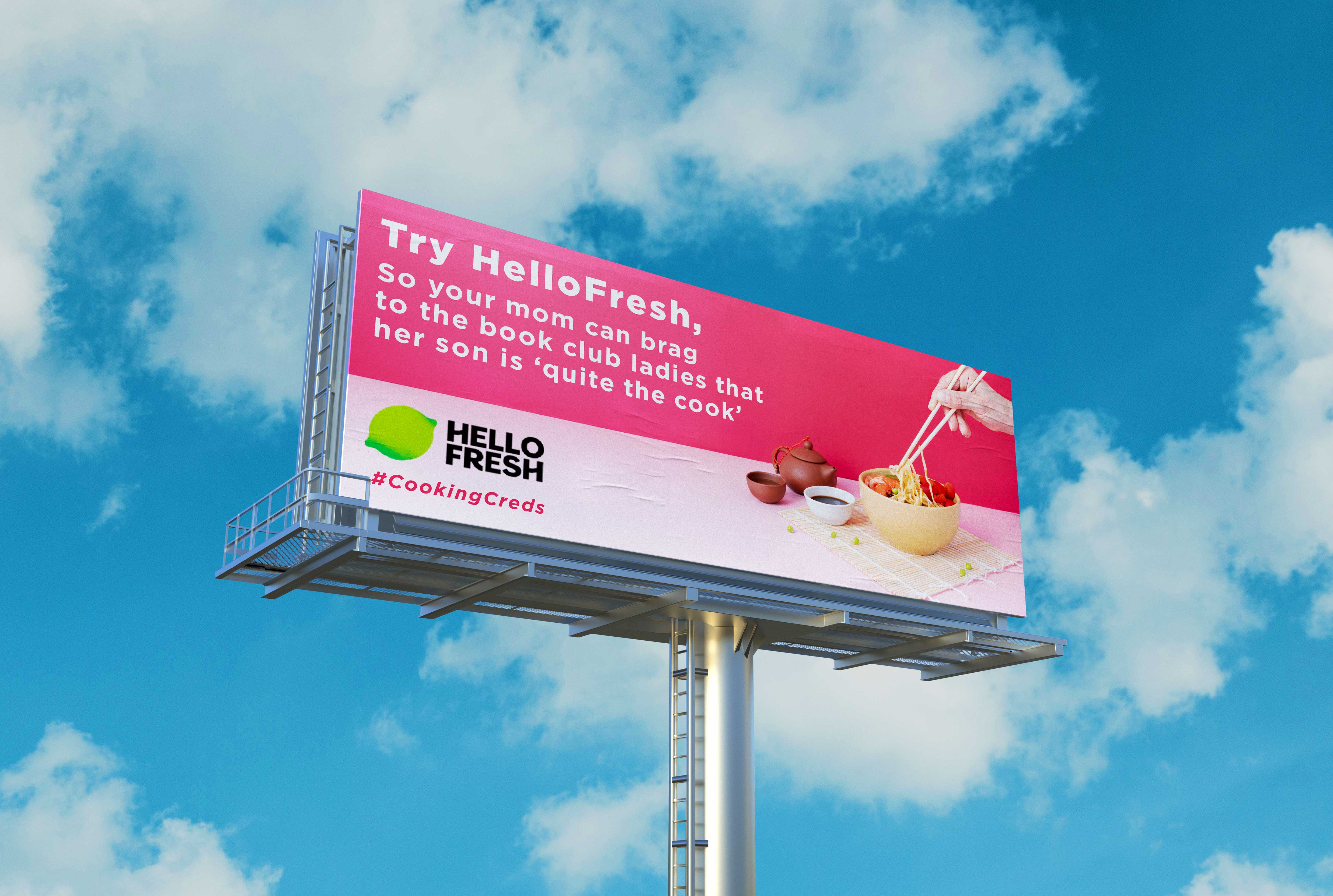 The campaign unfolded as a 360° experience, spanning digital, print, and promotional platforms. Messaging shifted subtly depending on the touchpoint: boxes read “Try this box”, recipe cards featured “Try this meal”, while billboards and ads reinforced the humor-driven tone. The strategy extended across Spotify ads, radio spots, social media, billboards, and even branded delivery trucks. Every touchpoint was designed to remove the intimidation from cooking and turn it into a fun, achievable activity, positioning HelloFresh as the ultimate ally for building confidence in the kitchen.